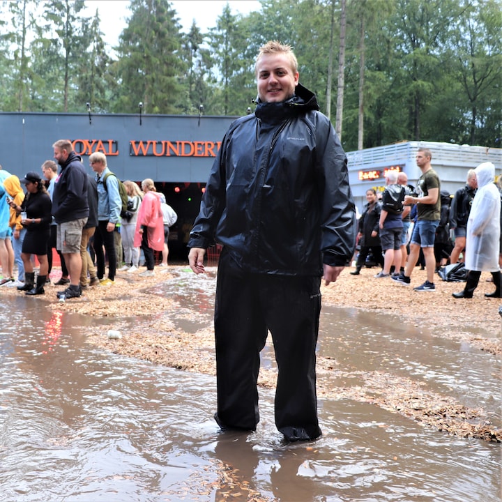 Det trofaste publikum udvandrede dog ikke, men ventede tålmodigt, til regnen stoppede, og programmet atter kunne fortsætte.