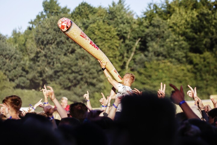 .. Og delte kæmpe, oppustelige joints ud til publikum. (Foto: © Martin Fält, (DR))