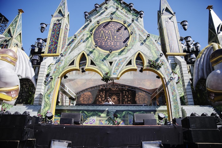 Sideløbende med de klassiske scener Rød-, Blå- og Teltscenen kunne de mere danseglade gæster feste hele dagen og natten på den nye spektakulære festscene Magicbox. (Foto: © Martin Fält, (DR))