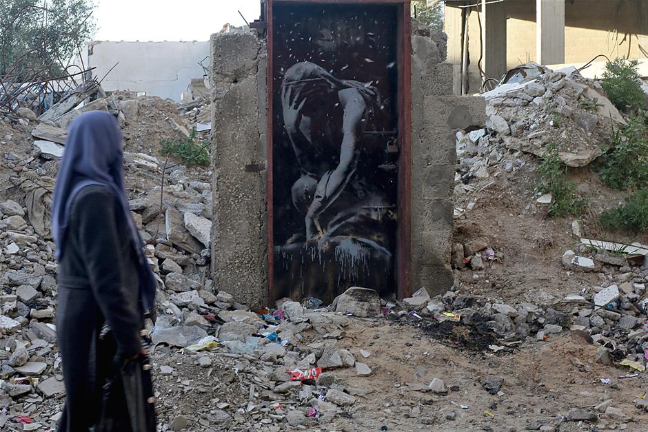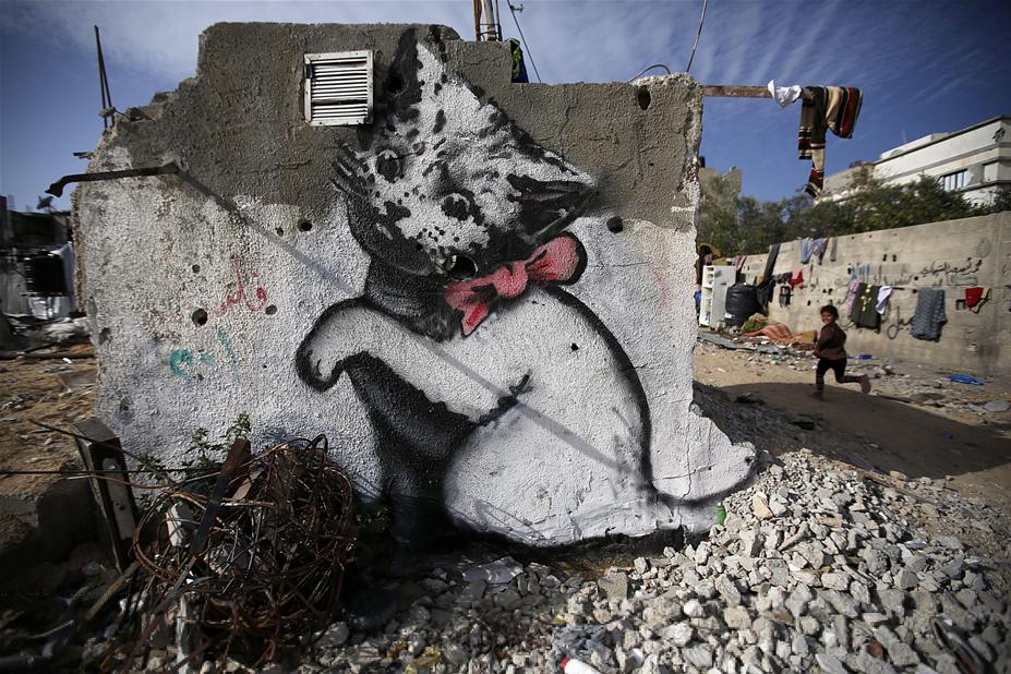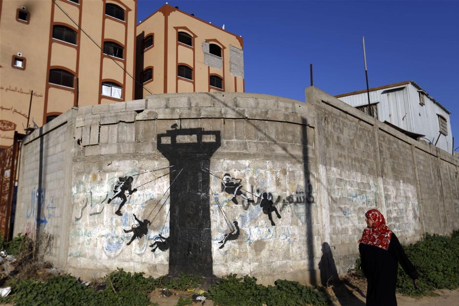 Omkring halvårsdagen for våbenhvilen mellem Israel og den palæstinensiske milits Hamas har Banksy lagt flere fotos af sine værker i Gaza op på sin hjemmeside.