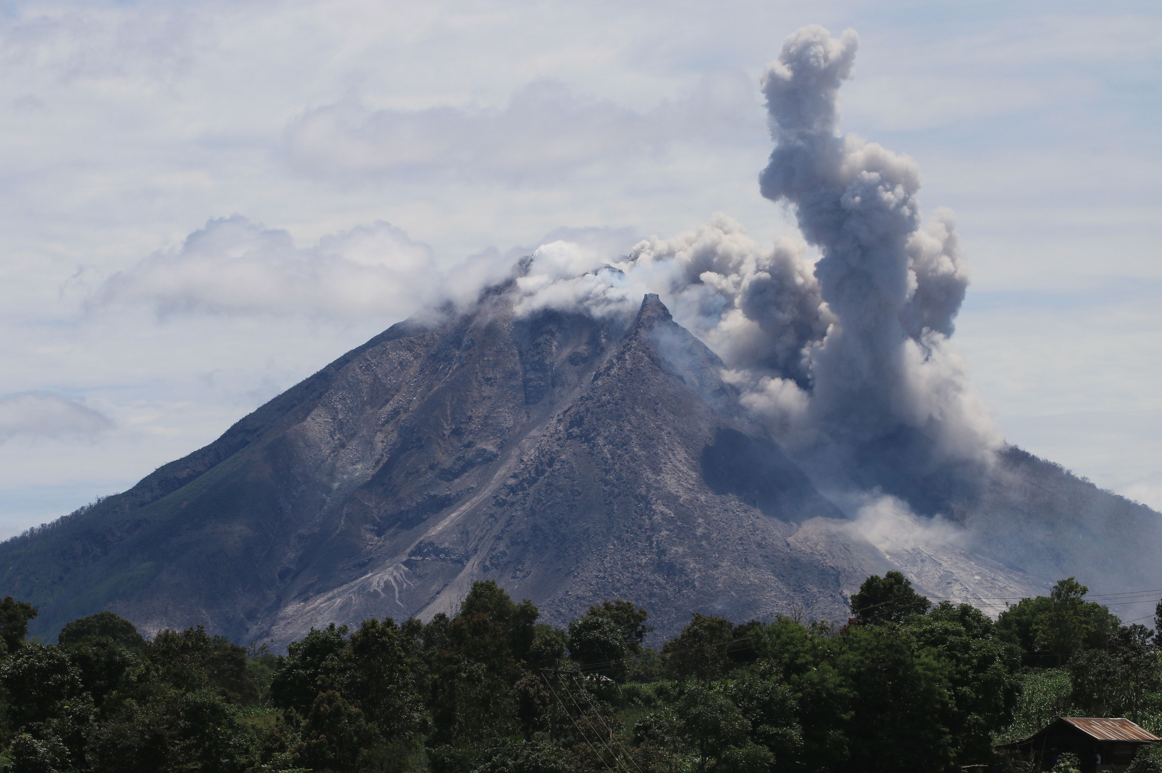 Se billederne fra området omkring Sinabung-vulkanen ovenfor.