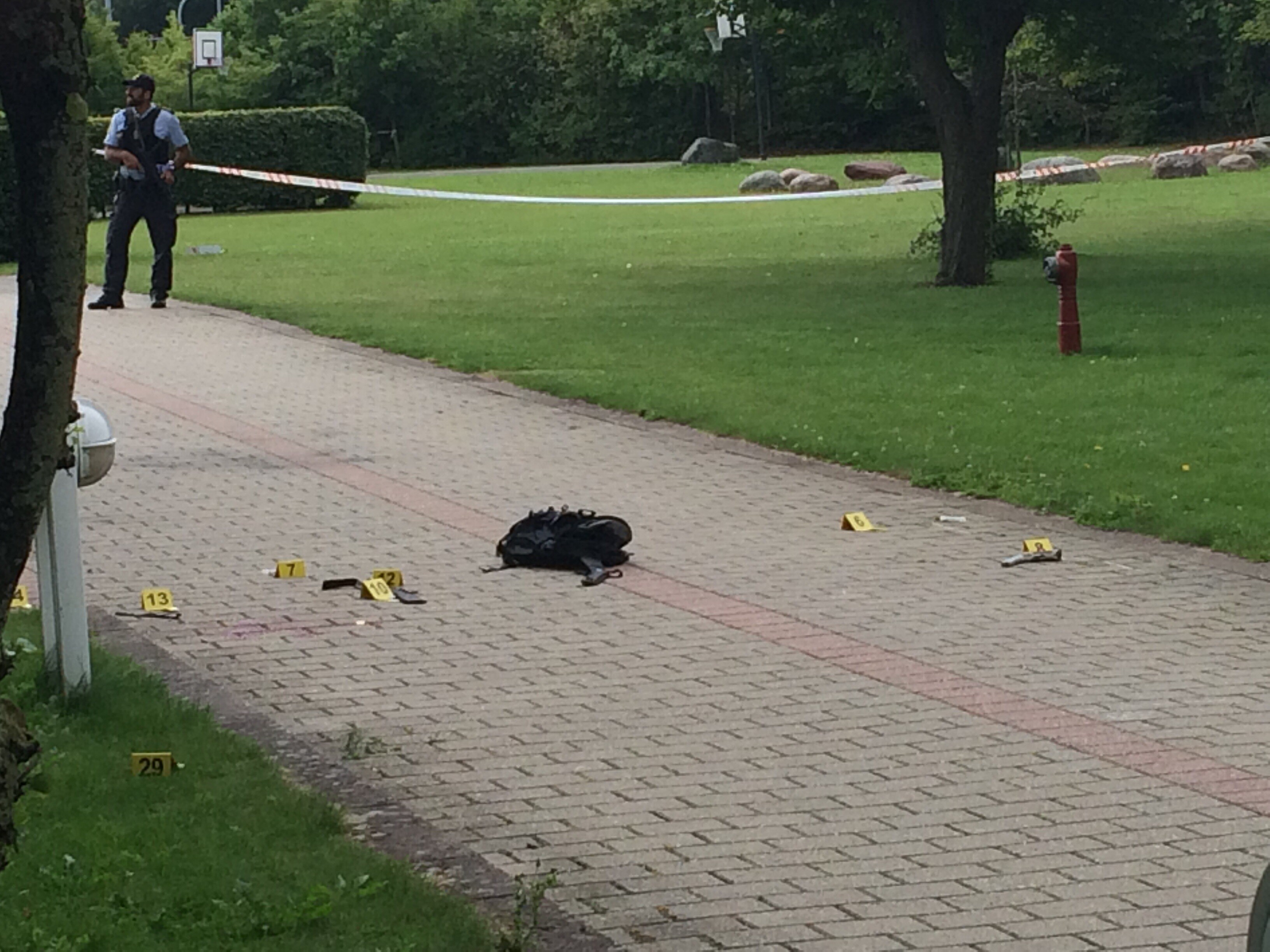 Den ene af de to betjente blev ramt af skud i hovedet og er fortsat i livsfare. Den anden betjent blev truffet i benet og er sammen med en civil udlænding uden for livsfare.