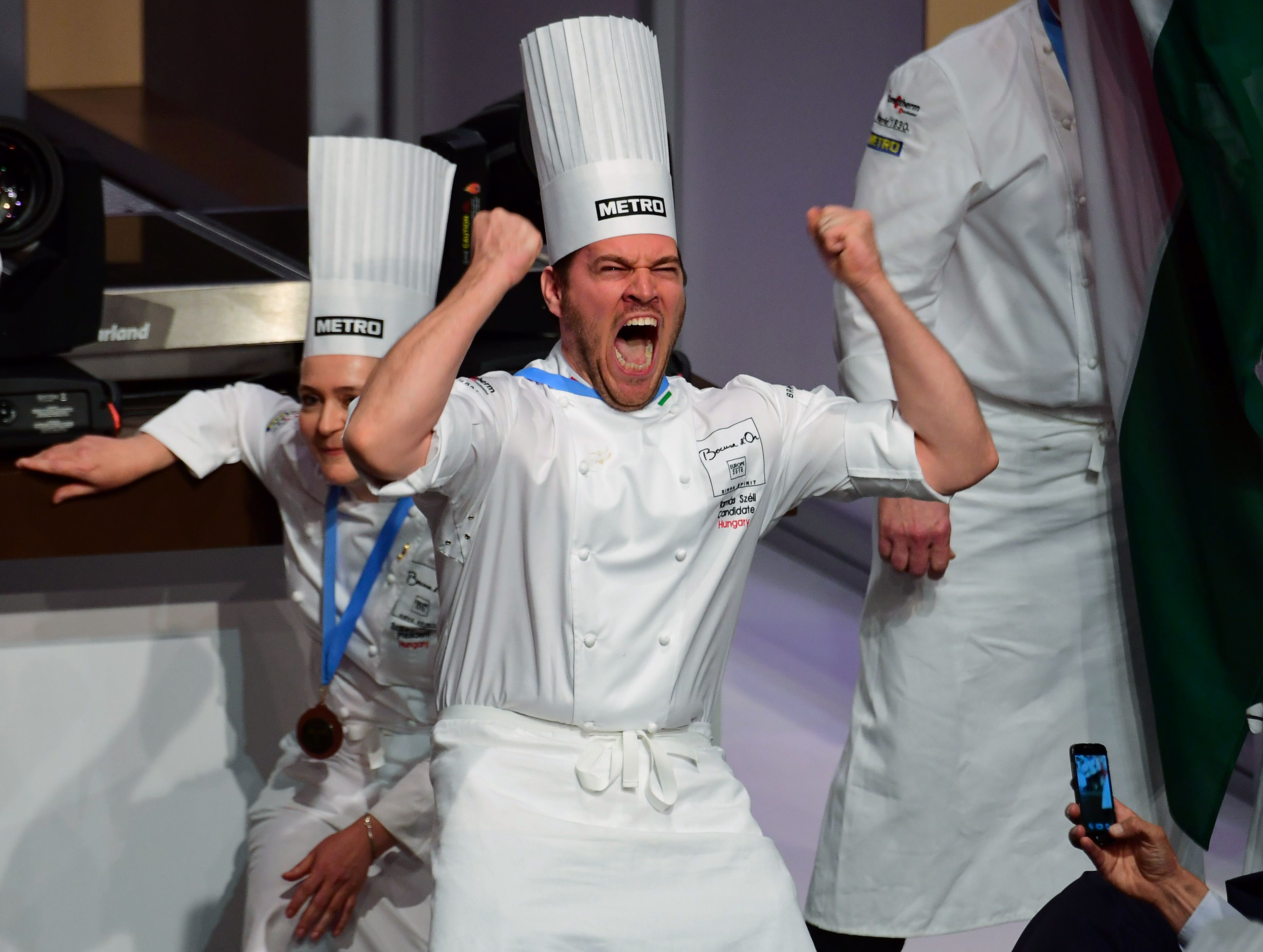 Der blev svunget piskeris og anrettet til de helt store kokkehuer, da der blev afholdt Bocuse d'Or i den ungarske hovedstad Budapest i dag. Det blev til en ungarsk sejr, mens Norge og Sverige indtog henholdsvis anden- og tredjepladsen. Danske Morten Falk måtte tage til takke med en noget skuffende 11. plads ud af 20 deltagere.