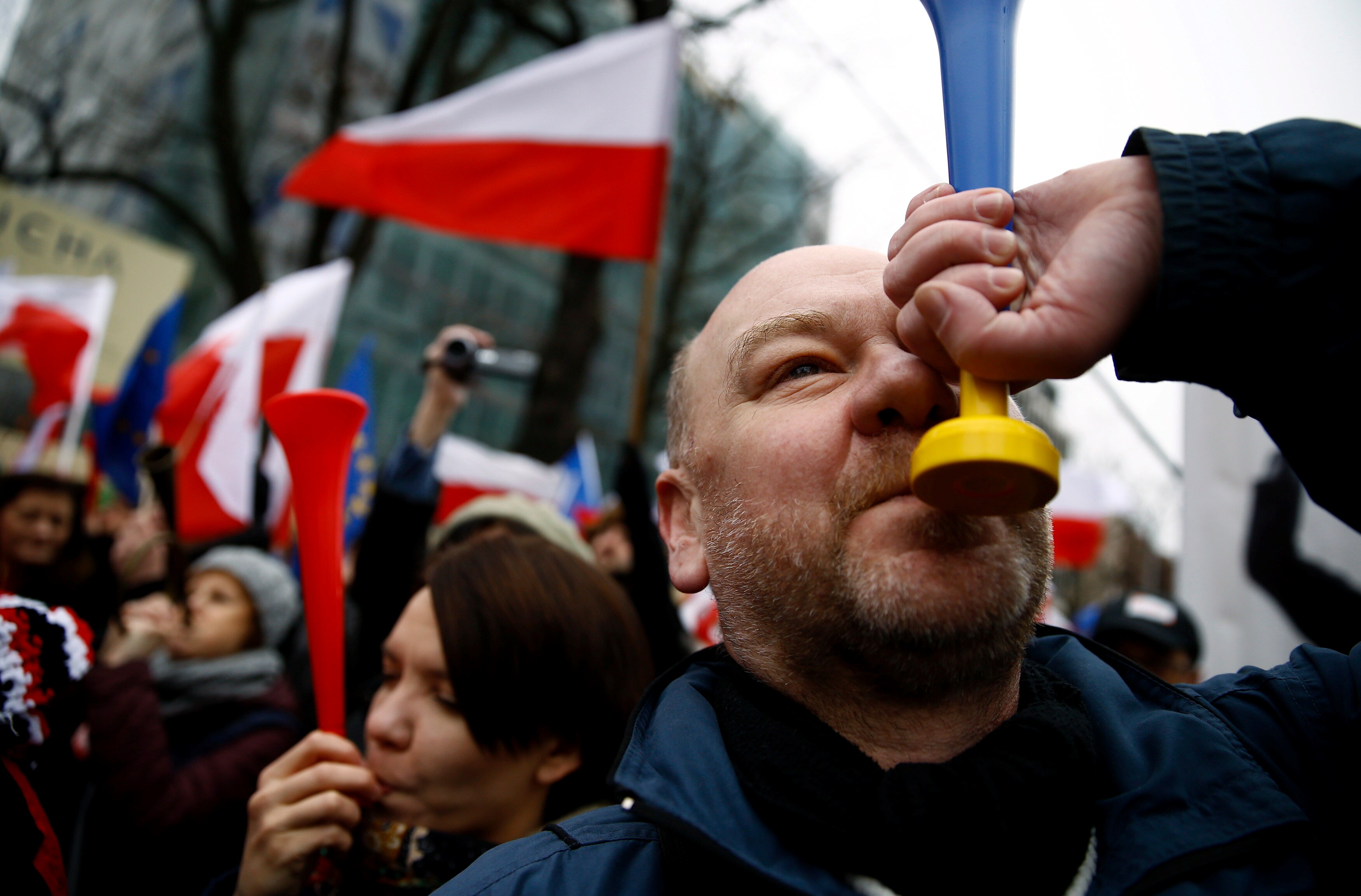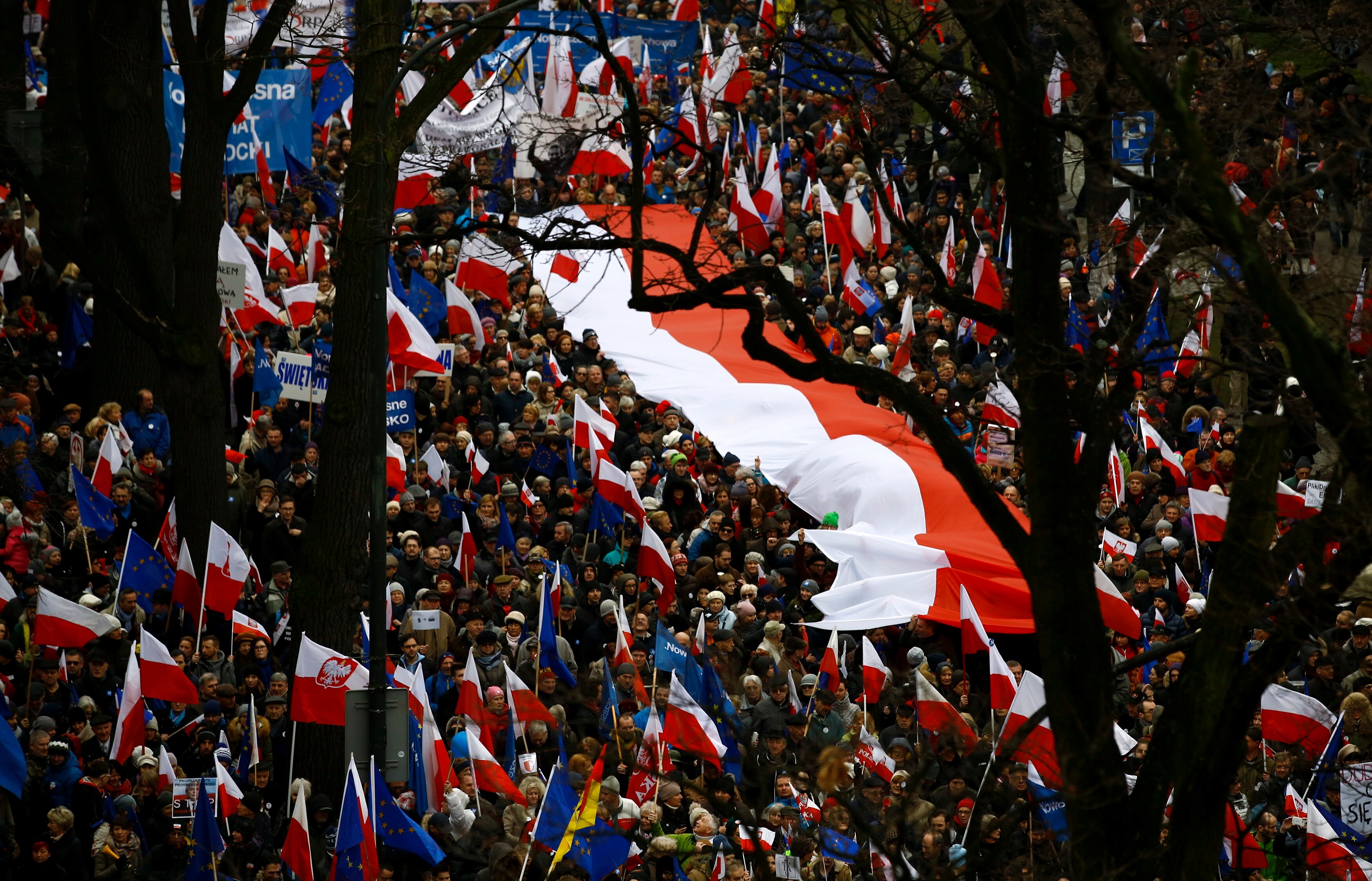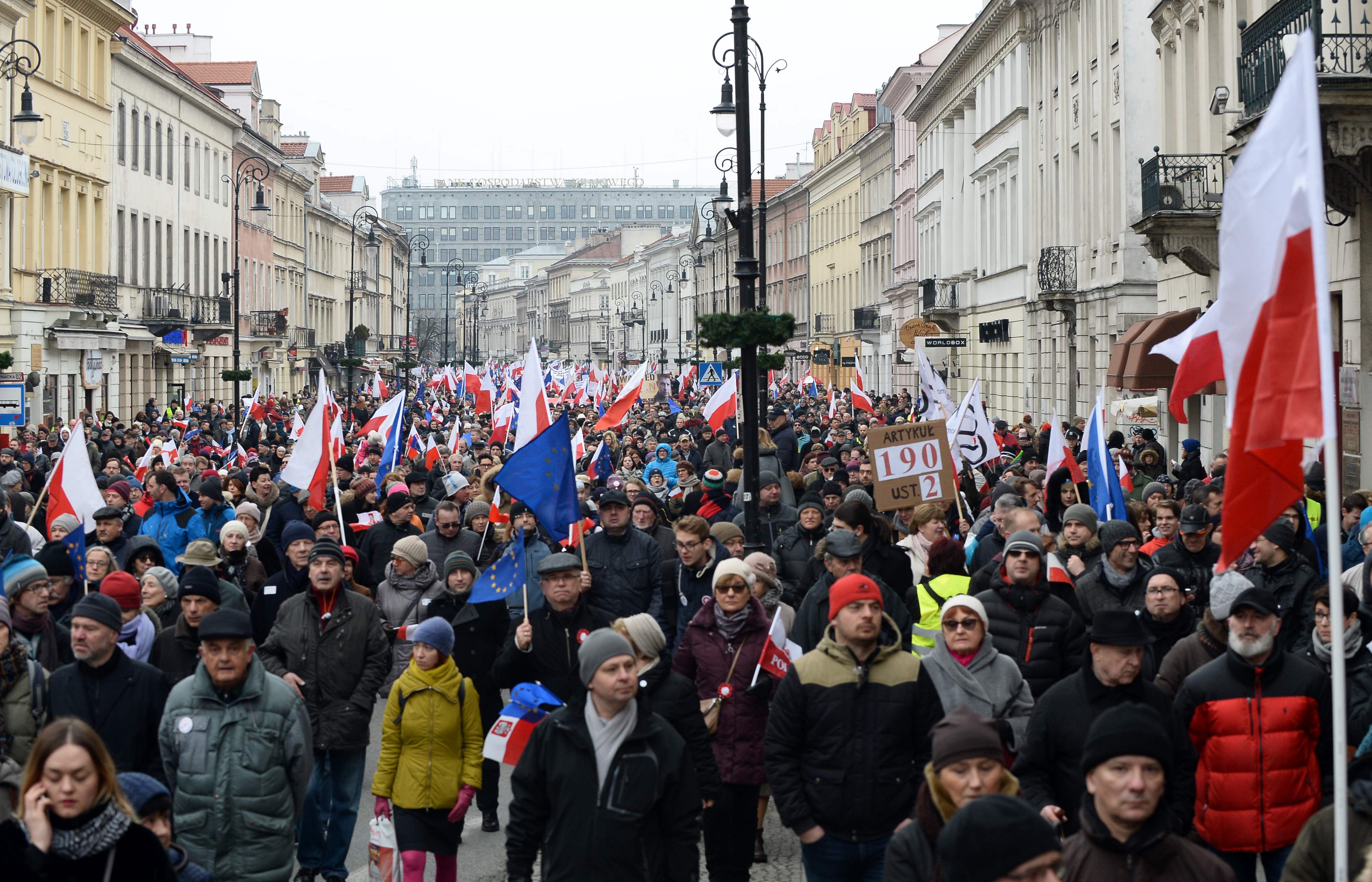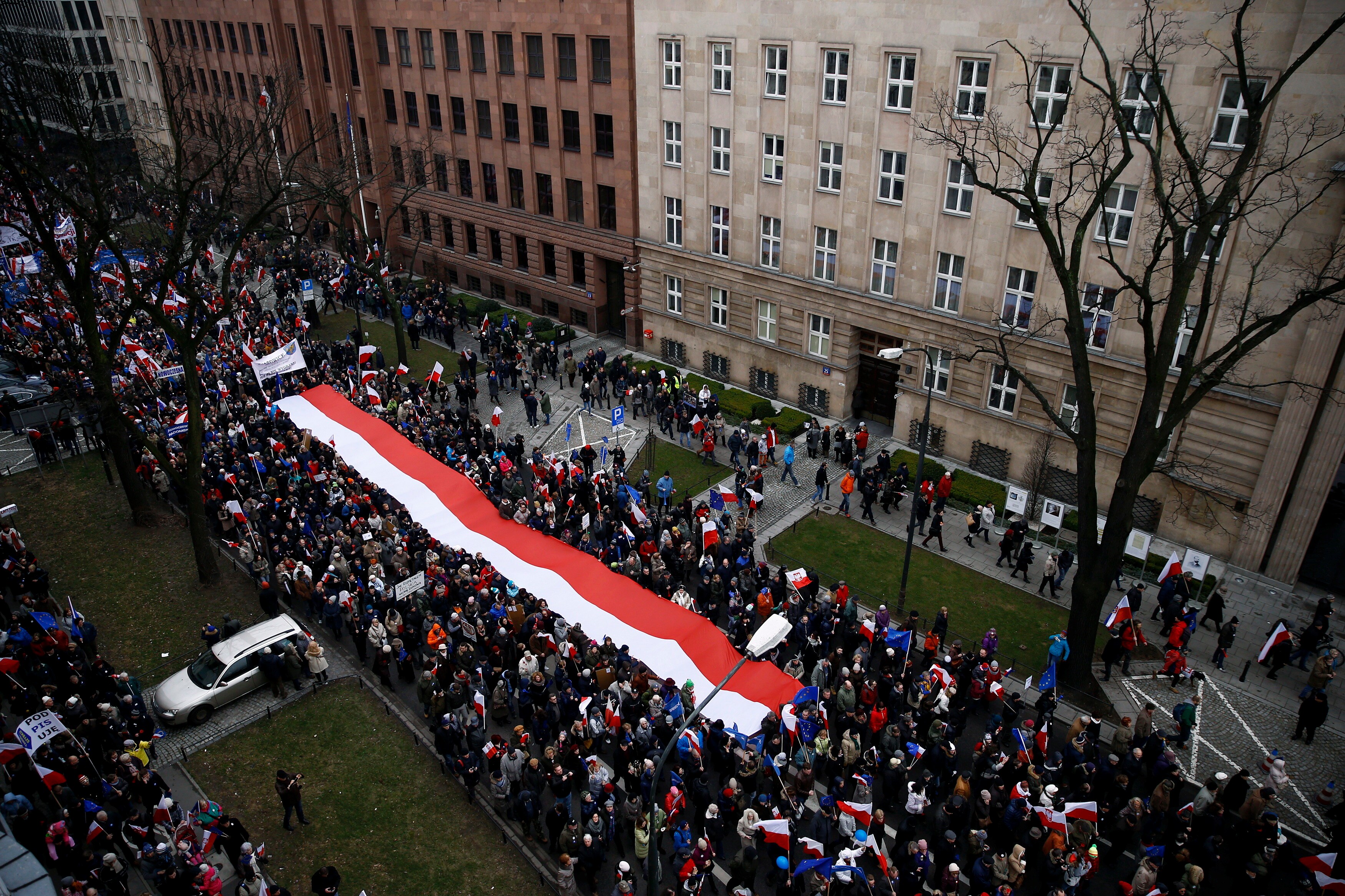 Polske flag og kritiske slagord fyldte i dag den polske hovedstad Warzawa. De mange tusinde demonstranter er utilfredse med regeringens reformer af forfatningsdomstolen, der af selvsamme domstol er blevet kendt i strid med forfatningen.
