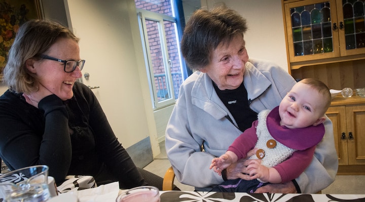 De små børn gæster kommunens ældre sammen med deres forældre. Siden ordningen blev indført i foråret 2015, er antallet af plejecentre, der får besøg, fordoblet.