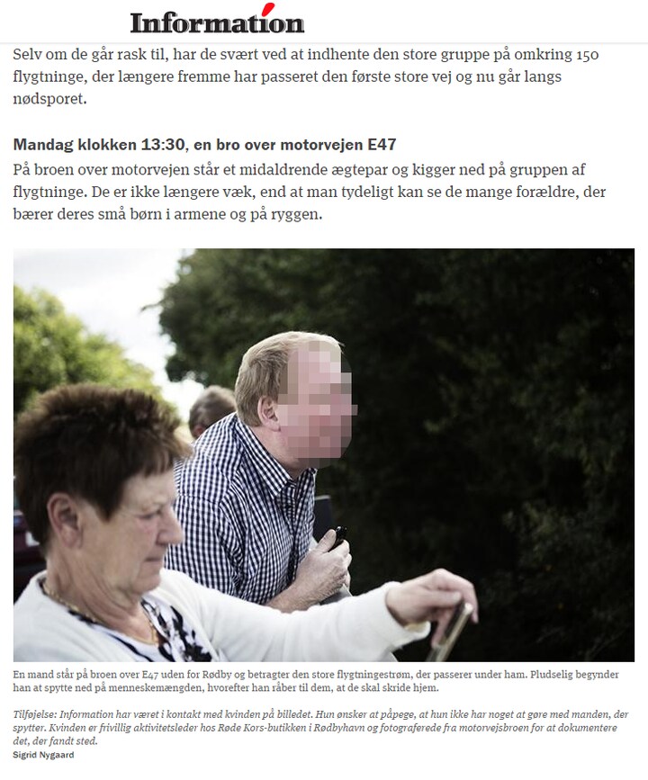 Da Information i efteråret bragte et billede af en mand, der angiveligt står på en motorvejsbro og spytter ned på en gruppe flygtninge, der går på motorvejen nær Rødby, kogte de sociale medier nærmest over af harme.