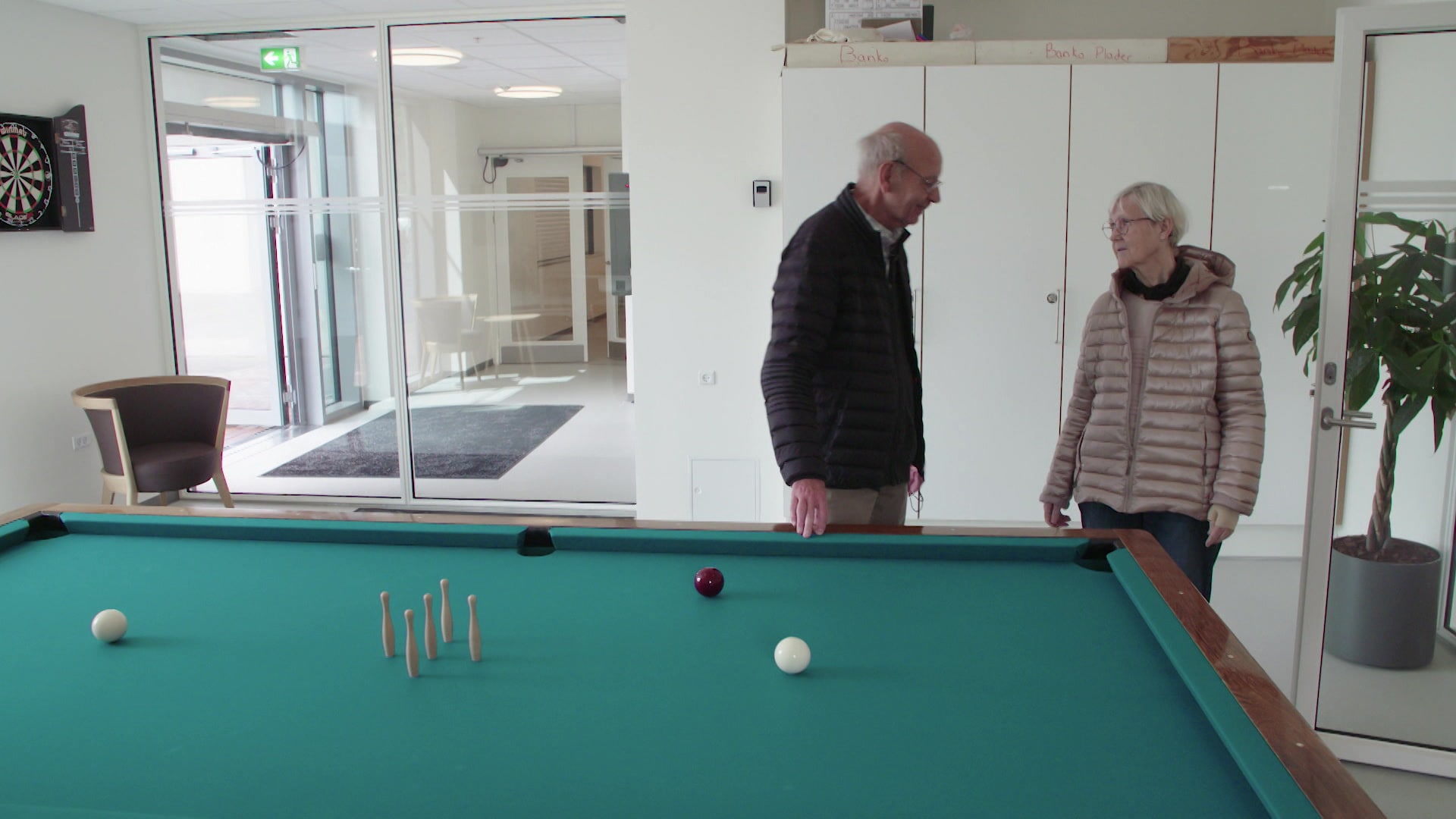 I stueetagen på plejehjemmet er der fri leg for alle, og ældre i vigør fra seniorboligerne og lokalområdet har ansvaret for at drive fælles aktiviteter.
