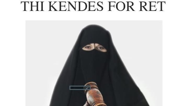 DF bragte en annonce med en dommer i burka med overskriften: "Underkastelse".