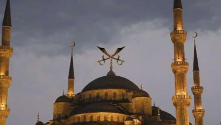 I en annonce mod moskeer i Danmark manipulerede DF et billede af en stor moske, så halvmånen over kuplen var erstattet med to krumsabler.