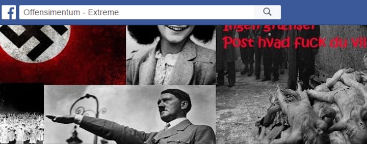 En af de hemmelige Facebook-grupper, Offensimentum Extreme, byder sine medlemmer velkommen med en collage med Adolf Hitler og teksten ”Post hvad fuck du vil”.