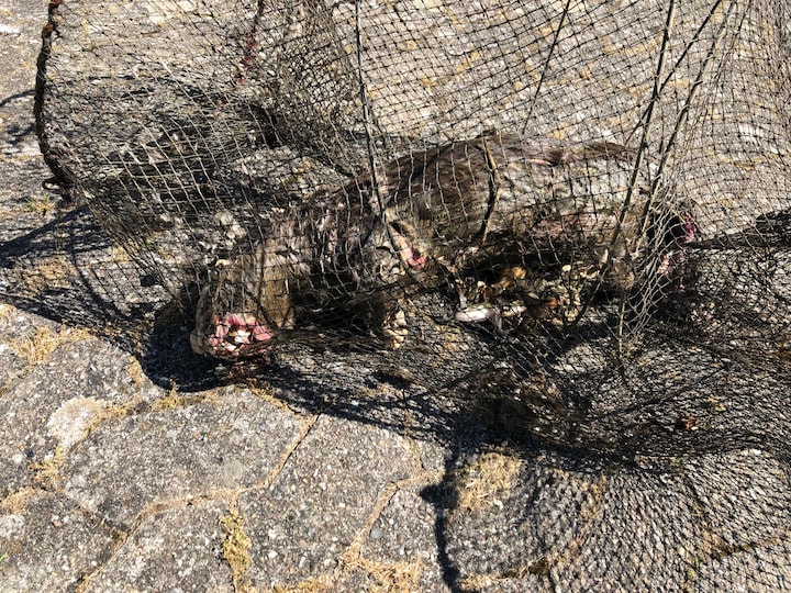 Inde i sivene fik de to mænd øje på en ruse, og ved nærmere eftersyn lå der en død odder i netmaskerne. Den var druknet, og den sad tydeligvis fanget.
