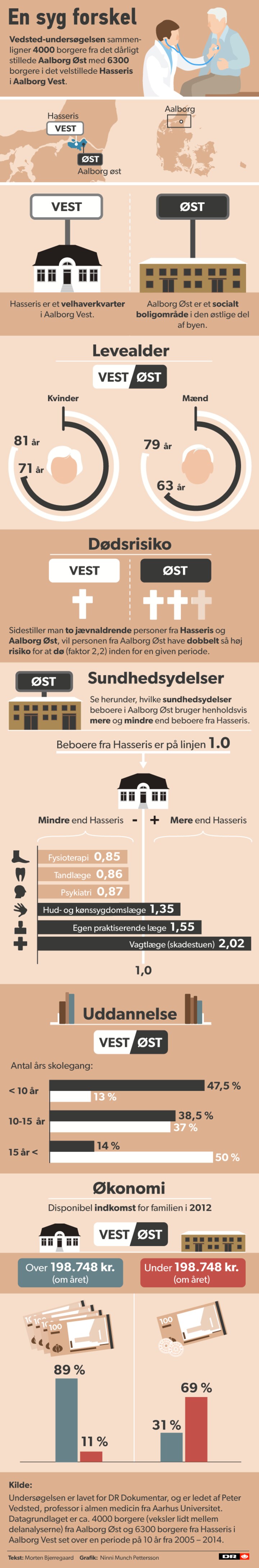 DR Dokumentar har fået lavet en undersøgelse af beboelsesområderne Hasseris og Aalborg Øst, som er ledet af Peter Vedsted, professor i almen medicin fra Aarhus Universitet. Datagrundlaget er ca 4.000 borgere fra Aalborg Øst og 6.300 borgere fra Hasseris i Aalborg Vest, set over en periode på 10 år fra 2005 – 2014.