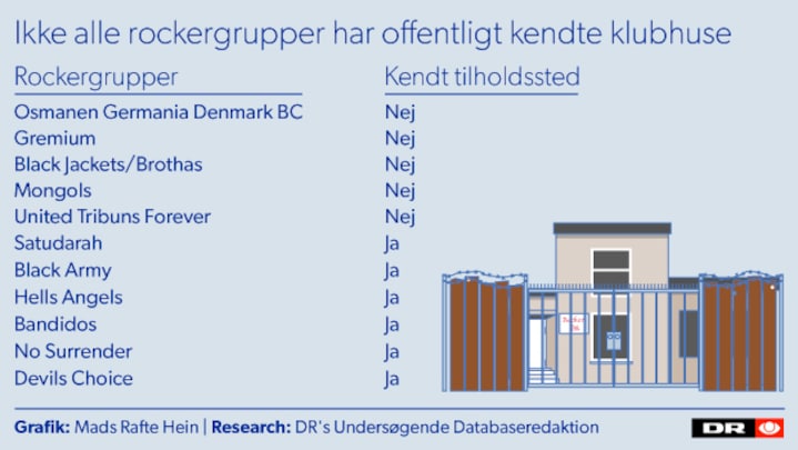De 28 rockerborge og tilholdssteder på Danmarkskortet er identificeret af DR’s Undersøgende Databaseredaktion på baggrund af oplysninger fra primært politi og myndigheder.