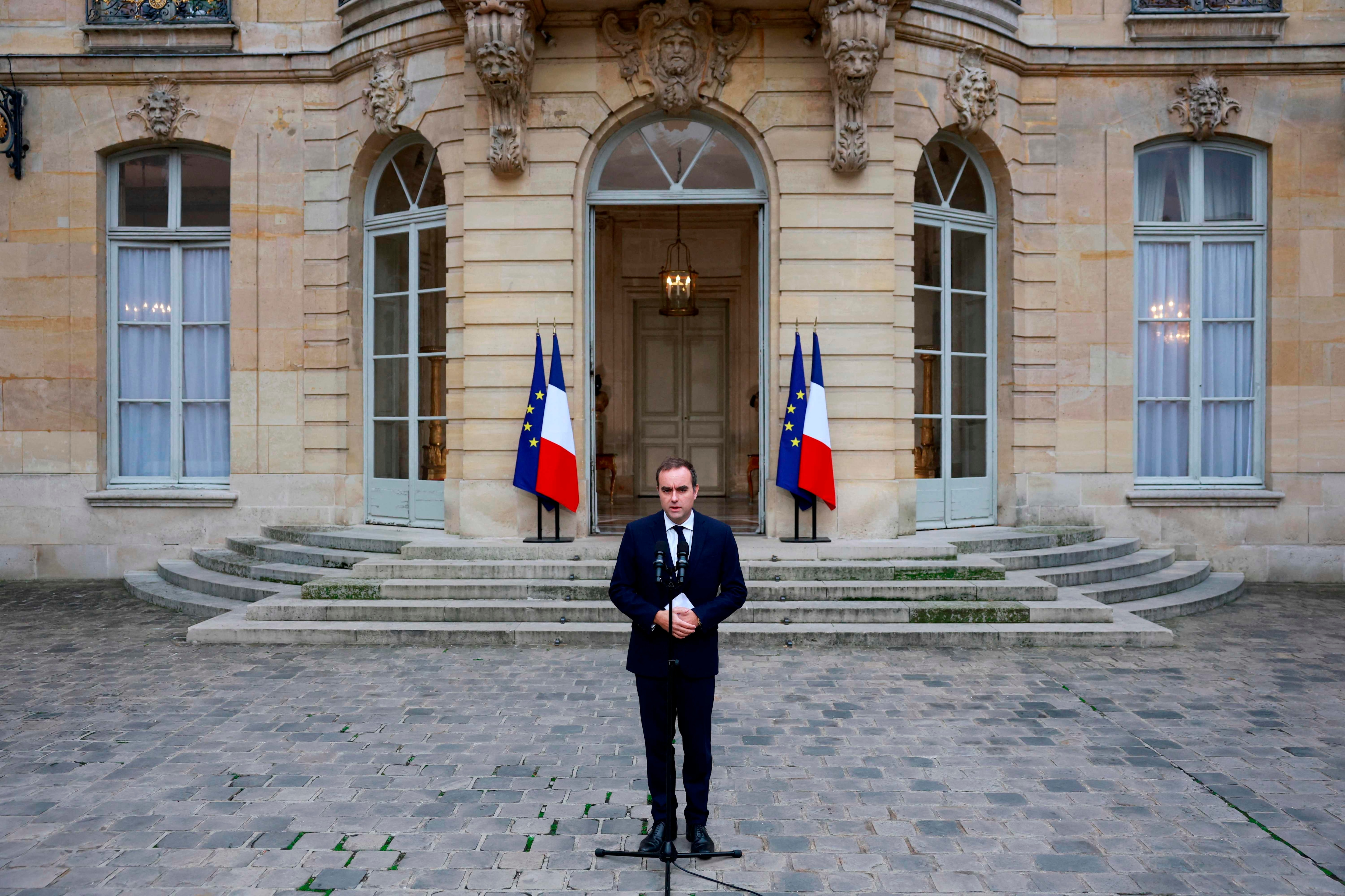 French outgoing Prime Minister Sebastien Lecornu gives a statement on the sidelines of his talks with political parties leaders in a bid to form a coalition government, able to pass an austerity budget through parliament, at the Hotel Matignon in Paris on October 8, 2025. The clock ticked down for Frances President to find an exit from his worst domestic crisis, after his first prime minister and one-time ally urged him to resign. The prime minister, the third premier since those polls, on October 5, 2025 threw in the towel just hours after broad rejection of his new cabinet. (Photo by Stephanie Lecocq / POOL / AFP) (Foto: © Stephanie Lecocq, AFP/Ritzau Scanpix)