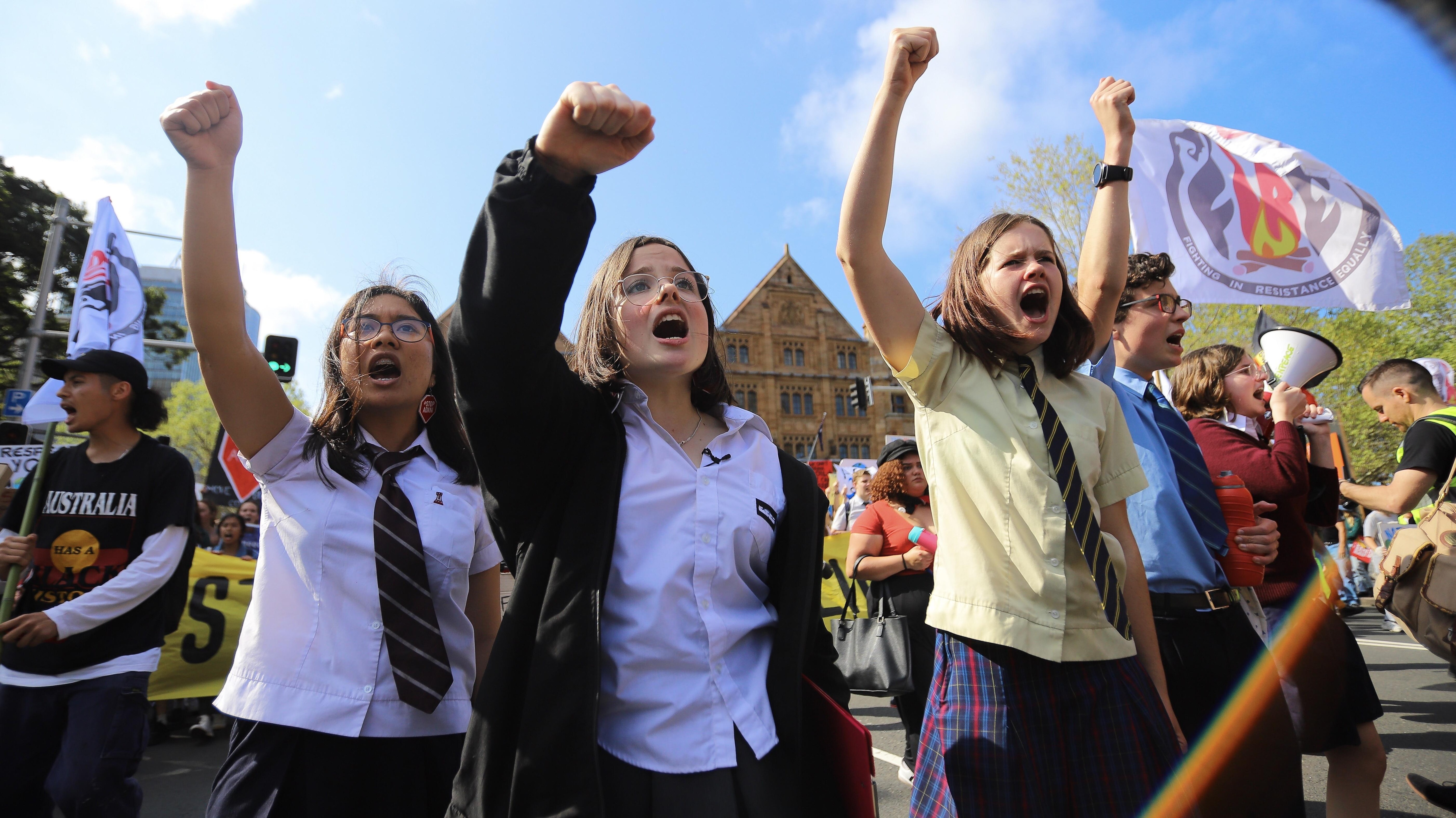 I Australien har tusindvis af demonstranter allerede været i gang i 110 byer landet over.