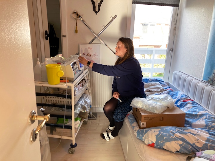 Hver nat kobler Nanette Olesen sig til en maskine, der i løbet af otte timer kommer ti liter væske ind i hende igennem et dræn i bughulen. Væsken tager kroppens affaldsstoffer med ud, som andre skiller sig af med ved at tisse.