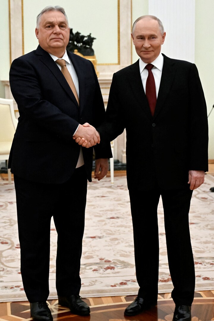 Russian President Vladimir Putin shakes hands with Hungarian Prime Minister Viktor Orban during a meeting in Moscow, Russia, November 28, 2025. Alexander Nemenov/Pool via REUTERS (Foto: © Alexander Nemenov, Reuters/Ritzau Scanpix)