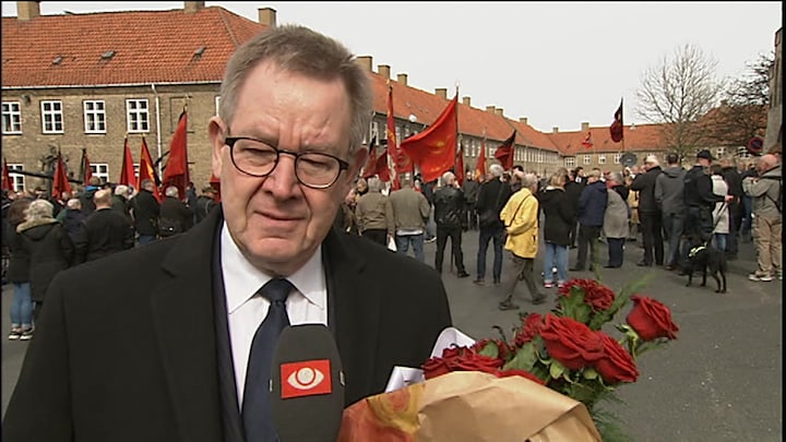 En af dem, der er mødt for at give sit sidste farvel, er den tidligere statsminister Poul Nyrup Rasmussen (S), som er mødt frem ved kirken med en stor buket røde roser i favnen.