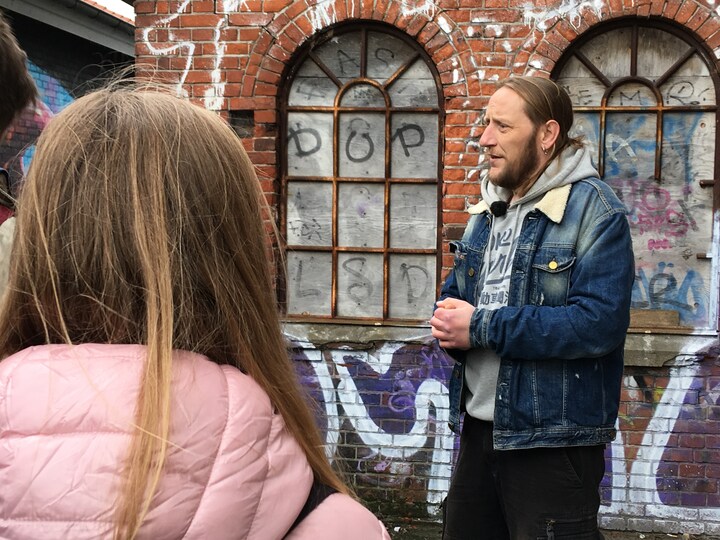 Det er tre år siden han begyndte som guide hos Poverty Walk. Han regner sig hurtigt frem til, at han må have vist flere end 250 grupper bagsiden af Aarhus. En stor del af dem er skoleklasser og konfirmander.