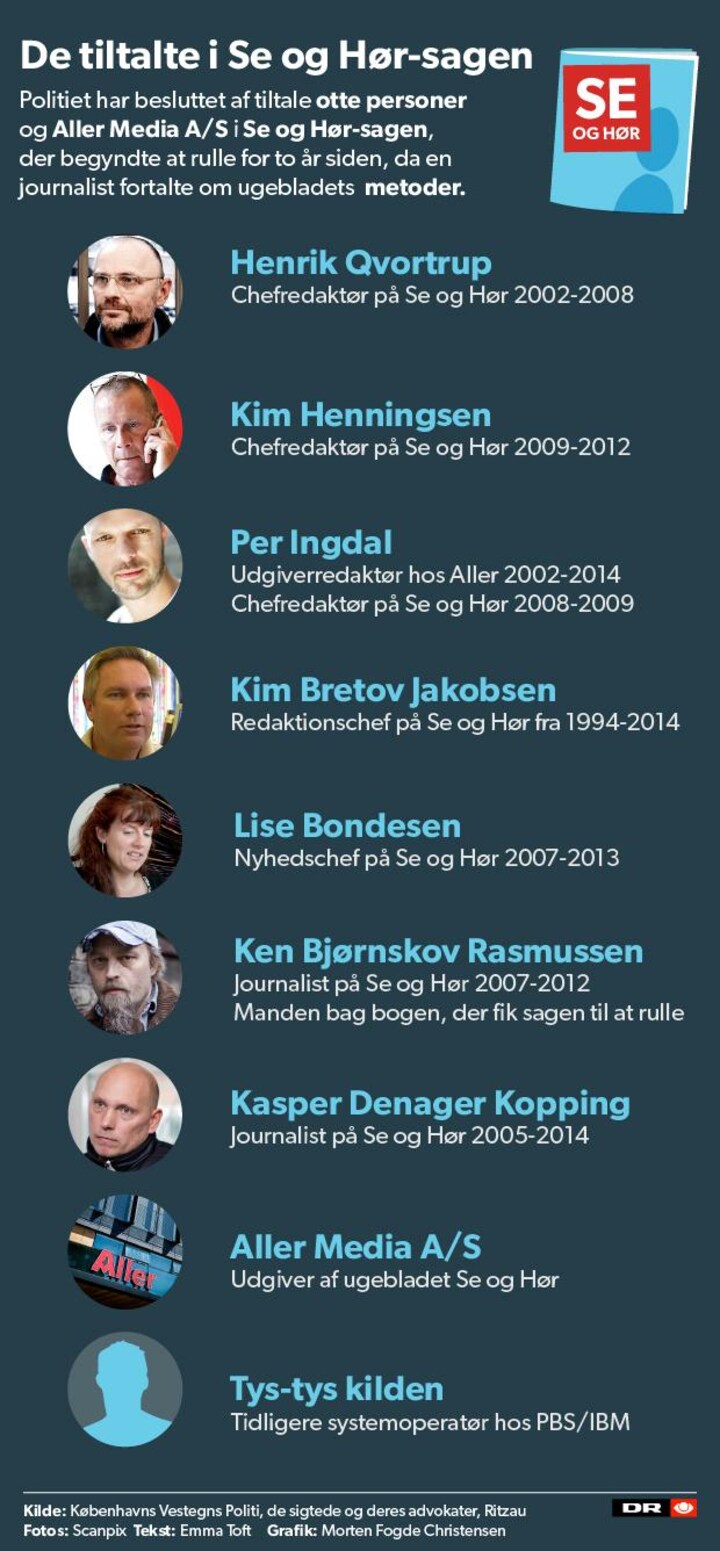 Ugebladets tidligere chefredaktør Henrik Qvortrup sigtes sammen med endnu en tidligere chefredaktør, nemlig Kim Henningsen. Senere sigtes også blandt andre udgiverdirektør i Aller, Per Ingdal, samt en forhenværende redaktionschef på bladet.