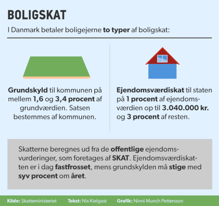 En familie, der bor i villa i København, betaler i gennemsnit tre og en halv gange så meget af deres indkomst i boligskatter som en familie, der bor i for eksempel Morsø eller Tønder.