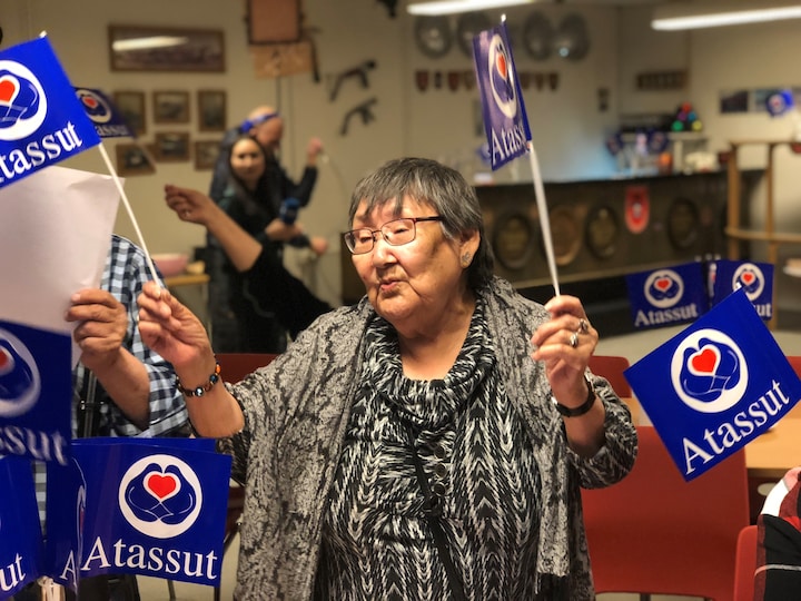 Valgfesten for det gamle parti Atassut minder lidt om en familiefest.