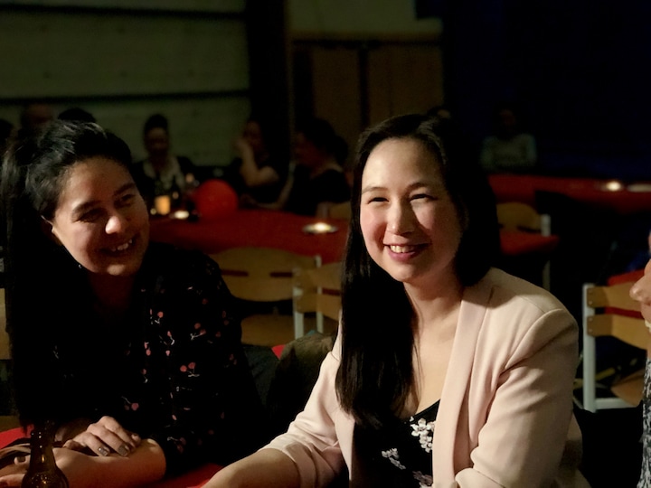 Festen bliver holdt på en lille café i den gamle kolonihavn, hvor der til daglig er latte og iskaffe på menuen.