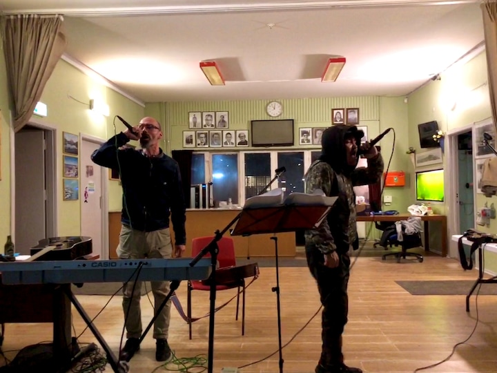 Bordene er pyntet med stearinlys og tomme sodavandsflasker med partiflag stukket i. I et hjørne står et one-man-show med guitar, keyboard og en rytmeboks. Det er Pavia Geisler, som både er en af Grønlands kendte musikere og samtidig kandidat for Nunatta Qitornai.