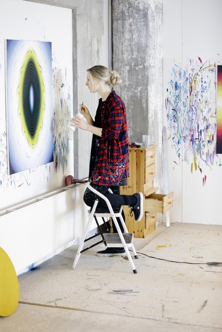 Jeg bruger måske 30 – 40 timer om ugen på at male. Jeg maler for det meste i mit atelier, som ligger ved havnen i Aalborg. Midt i beton og byggerod, men jeg er virkelig glad for det.