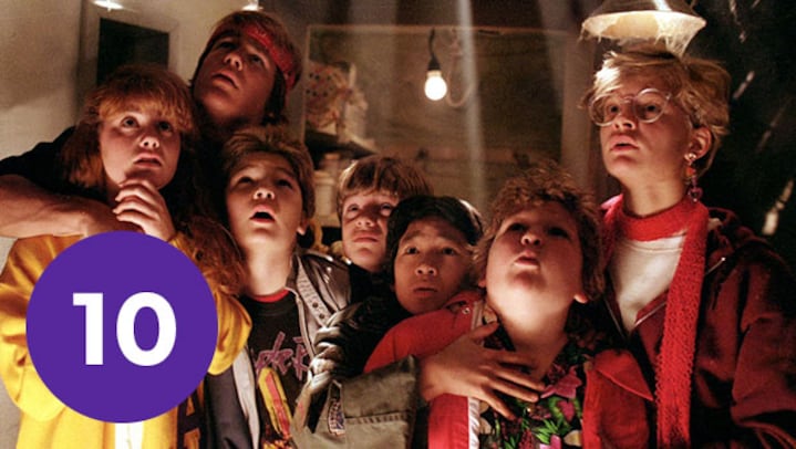 Eventyrfilmen kredser om en gruppe drenge, der opdager en indgang til en underjordisk hule under deres hus. Da de udforsker den, kommer de ud på et legendarisk eventyr. Pirater, skeletter, fælder, grådige forretningfolk og Corey Feldman. Kort sagt, filmen har alt.