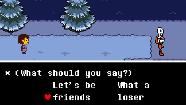 'Undertale' giver dig et valg: Du kan bekæmpe monstrene med magt, eller du kan vende den klassiske voldelige løsning på hovedet og i stedet forsøge at blive monstrenes ven ved at lytte til dem og 'overvinde' dem ved f.eks. kradse dem på maven eller få dem til at grine. 'Undertale' tilpasser sig den måde, man vælger at løse problemet på, og bliver mørkere og mørkere, jo mere vold, man vælger at bruge.