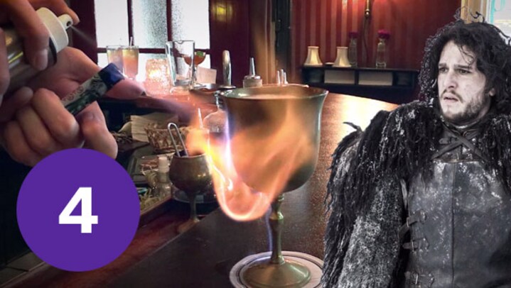 Sådan laver du den: Servér det hele i et metalbæger eller ent andet middelalderlig beholder. Hvis du er den heldige indehaver af en spraypumpe, så fyld lidt rom på den, tænd en lighter og servér den under forsigtige forhold.