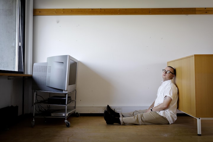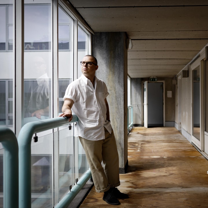 Her på tredje sal med fred og ro omkring ham, og en dragende udsigt over bydelens hustage og et sommergrønt bagtæppe af træer og marker, har han siddet et par dage om ugen siden starten af året, hvor sønnen Teo kom til og overtog en stor del af pladsen i familiens trange lejlighed i centrum af Aarhus.