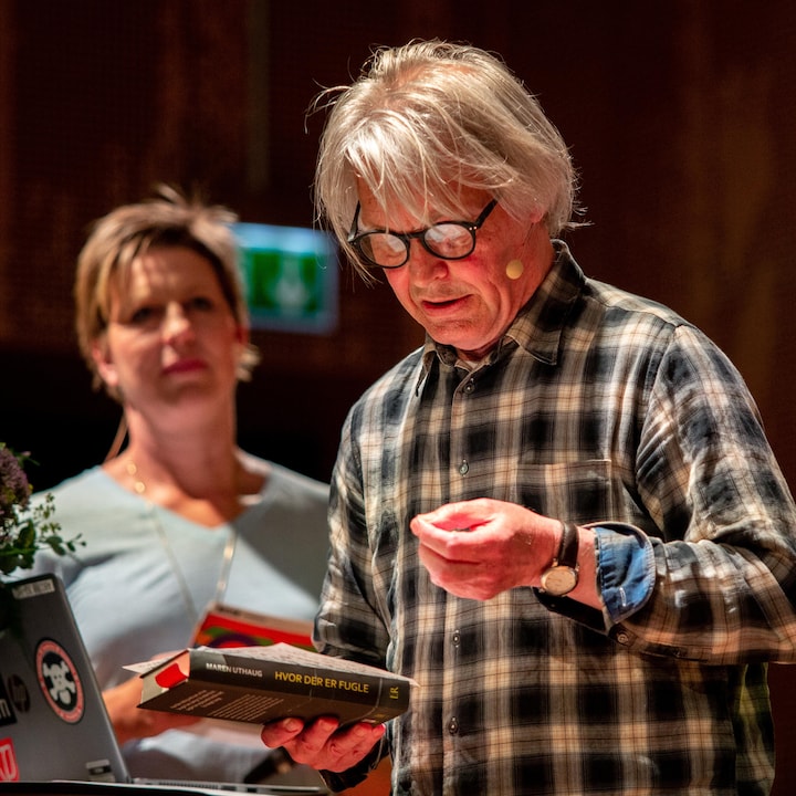 Litteraturforsker og lektor ved Aarhus Universitet, Stefan Kjerkegaard, var også på scenen i dag. Han fremhævede den ’groteske humor’ og element af ’røverhistorie’ i fortællingen, som han så ligheder med i Maren Uthaugs tegneserie.