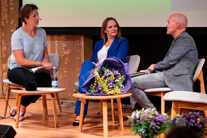 Maren Uthaug lyttede interesseret og ’tog noter’ fra de kloge ord, der blev sagt om hendes roman. Og så sluttede hun af med at understrege, at den næste roman, hun skriver på bliver noget helt andet.