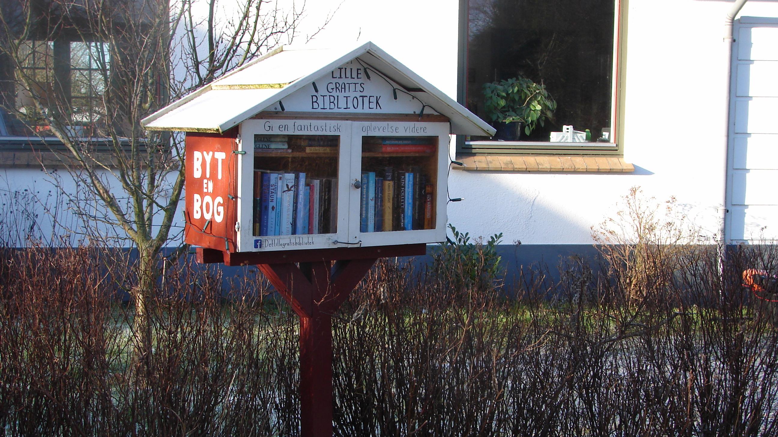 Her er alle byens borgere velkomne til at kigge forbi på alle tider af døgnet og tage en brugt bog med hjem til natbordet - og meget gerne give en bog i bytte, der alligevel bare står og samler støv på bogreolen derhjemme.
