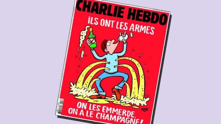 Den aktuelle forside med tegningen af en champagnedrikkende franskmand med skudhuller i kroppen deles lige nu flittigt på de sociale medier, og som altid deler tegningen vandene: