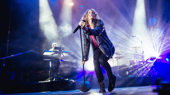 - Det var en mega, mega fed koncert, selvom det regnede. Det er utroligt, at det slet ikke har regnet i tre måneder, og så åbner himlen sig pludselig på vid gab.