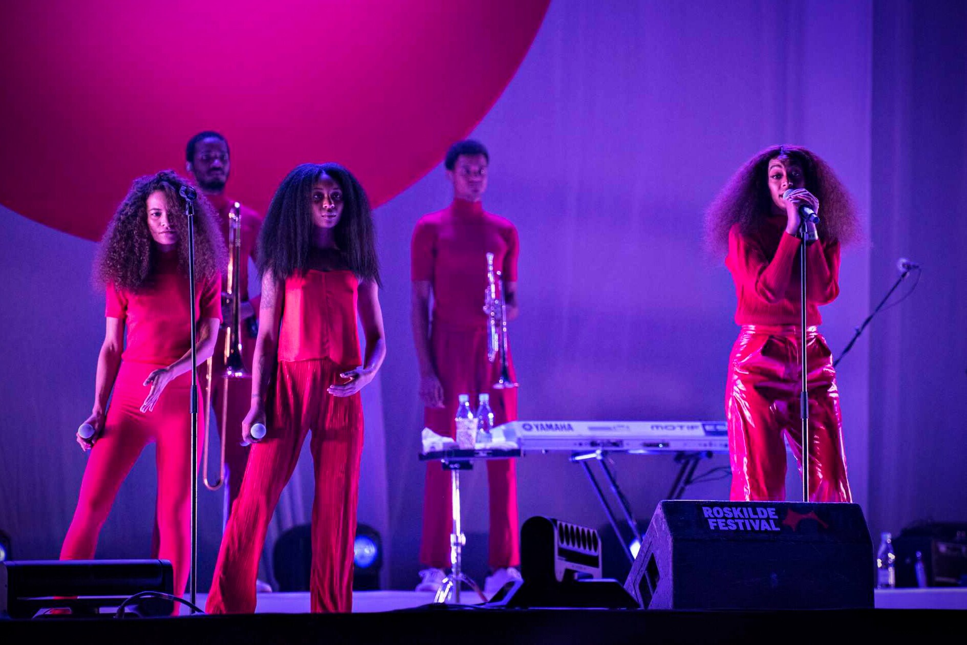 Solange er lige så perfektionistisk med sine koncerter som sin søster Beyoncé - dog med et helt andet udtryk. Alle på scenen var klædt i rødt og bidrog med synkrondans. (Foto: © Ida Guldbæk Arentsen, Scanpix)