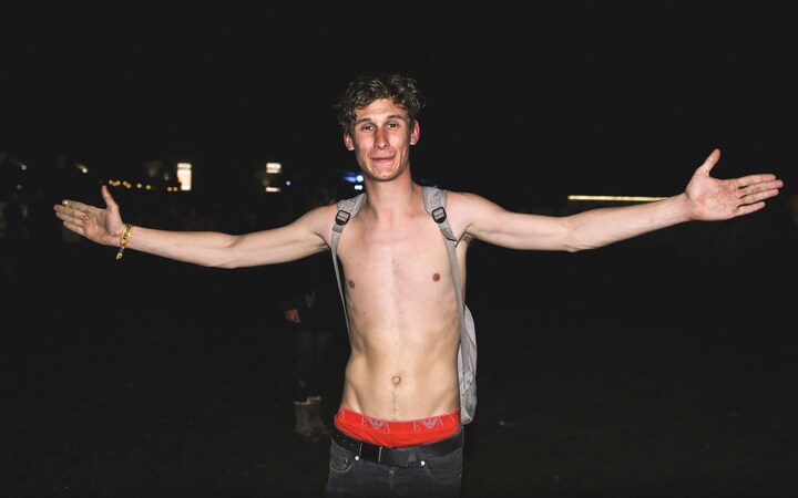 Også 23-årige Benjamin Thomsen havde en fest under koncerten - faktisk en så god fest, at han smed trøjen.