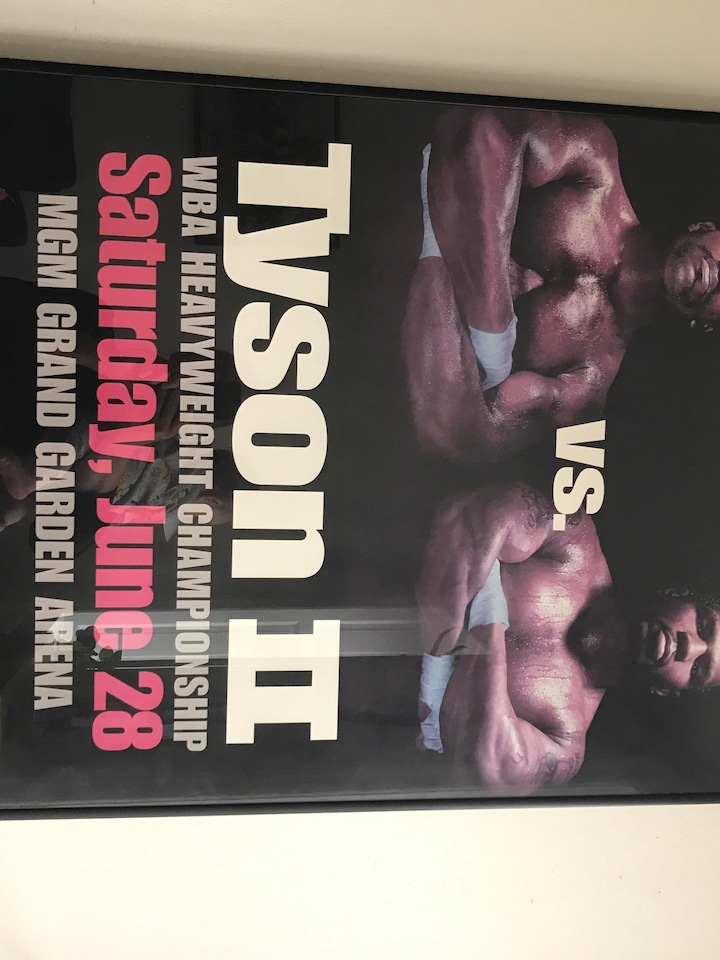 Plakaten erhvervede hendes mand, Las, sig som 14-årig i forbindelse med en tur til Las Vegas, hvor kampen blev bokset. Gennem de sidste syv år har den hængt i parrets lejlighed, men da de nu er flyttet i hus, mente Melina, at den skulle forvises til kælderen.