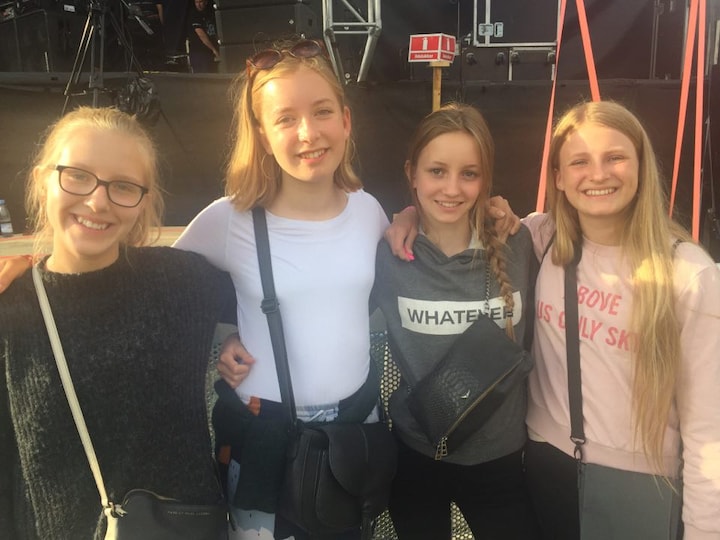 - Jeg var vildest med slutningen, for der fik han virkelig alle med siger Selma Ejstrup på 14 år, der var mødt op til koncerten sammen med veninderne Lulu, Laura og Karoline, alle 13 år. - Jeg synes bare, han er meget nærværende, man kan virkelig føle ham på scenen. Han er med folk hele tiden. Han virker virkelig sød. For eksempel da han tog ham den lille dreng, der også hed Mads og havde den samme frisure som Mads Langer, med op på scenen, fortæller Lulu Axelsen.