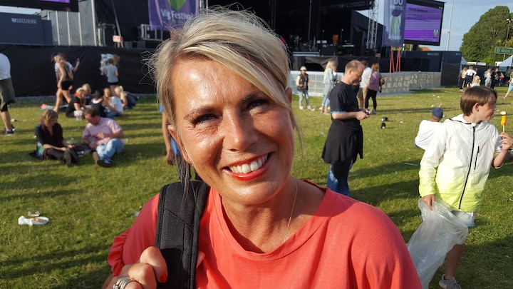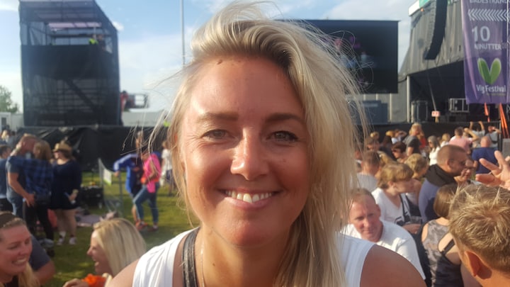 Michelle Korsholm Clausen stod under hele koncerten på en bænk og dansede og sang med. Den 38-årige festivalgænger har da også set ham tre gange før, så hun er godt inde i popstjernens bagkatalog.