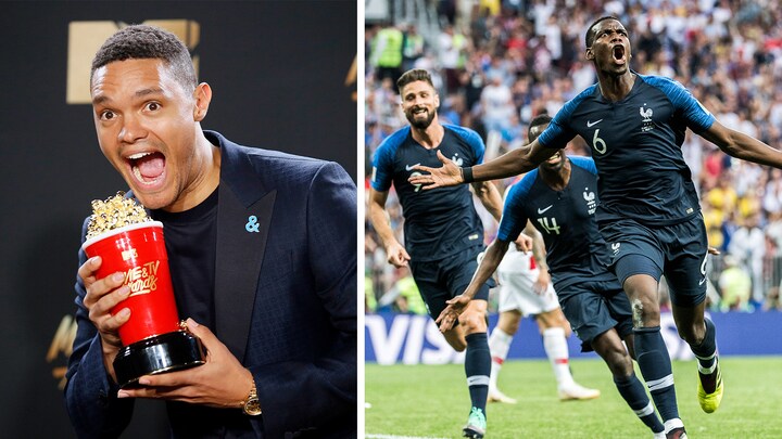 - Afrika vandt VM. Jeg ved godt, de er nødt til at sige, at det var det franske hold. Men se på de spillere. Du bliver ikke så solbrændt af at hænge ud i Sydfrankrig, sagde Trevor Noah i kølvandet på Frankrigs sejr over Kroatien i VM-finalen i 'The Daily Show'.