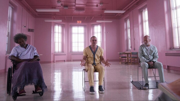 I stedet tager han de to umage helte, David Dunn og Elijah Prince (spillet af Bruce Willis og Samuel L. Jackson) fra hans 18 år gamle film 'Unbreakable' og parrer dem med James McAvoys figur fra Shyamalans overraskende succes 'Split' – ham med de 23 personligheder.