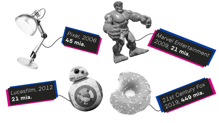 Den allerstørste check blev skrevet i 2019, hvor Disney efter to års forhandlinger og granskning fra de amerikanske konkurrencemyndigheder fik lov til at købe 21st Century Fox for 449 milliarder kroner.
