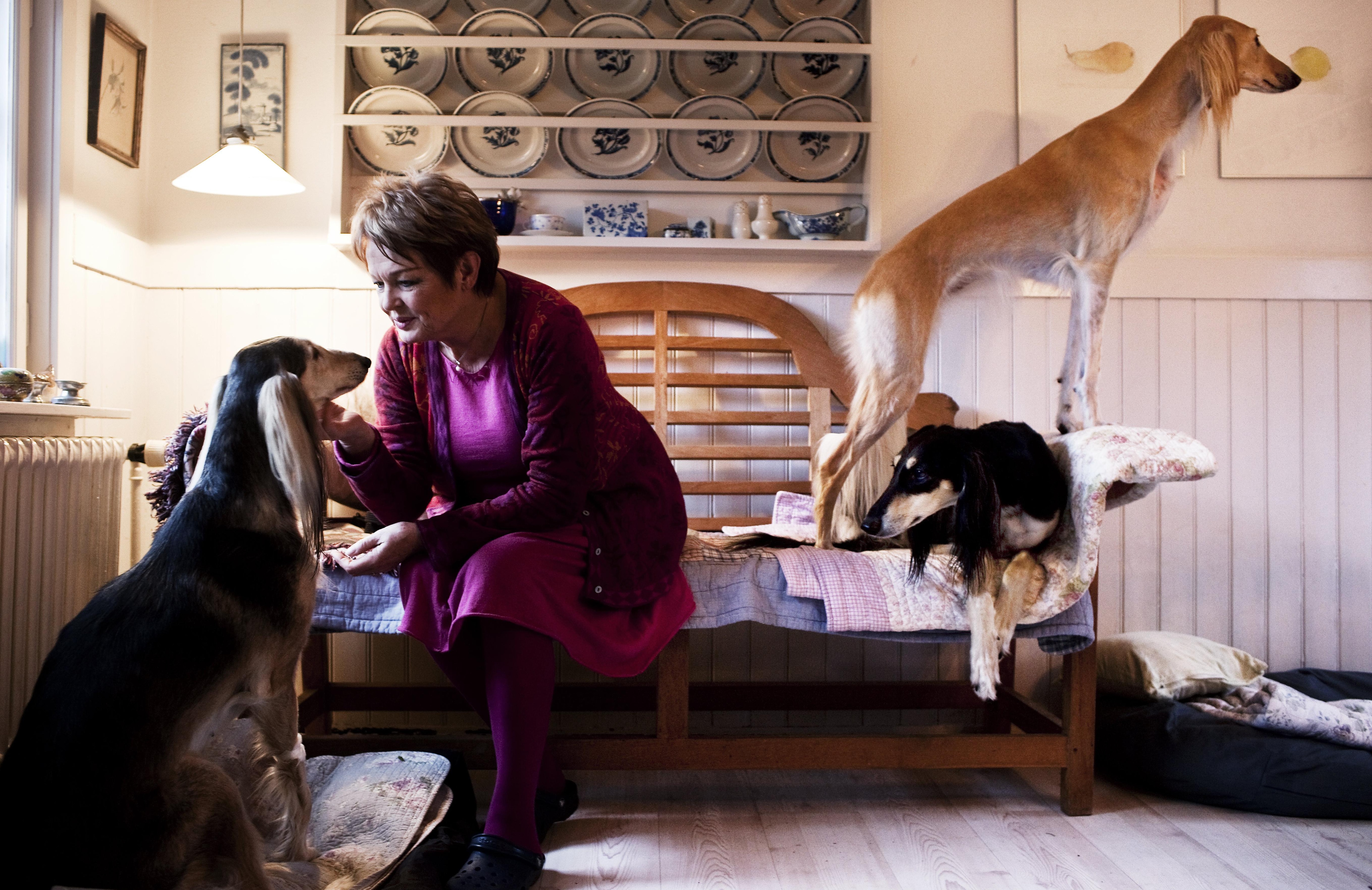 Ghita Nørby ses her sammen med sine tre hunde omkring hendes 75 års fødselsdag. (Foto: © Andreas Hagemann Bro, Scanpix)