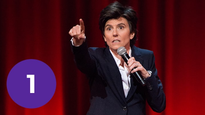 Godt en halv time inde i sit show ’Boyish Girl Interrupted’, midt i en overlagt langsommelig, akavet historie om at sikkerhedspersonalet i lufthavnen ikke kan se, om hun er mand eller kvinde, smider Tig Notaro pludselig skjorten, og publikum hviner af heppefryd.