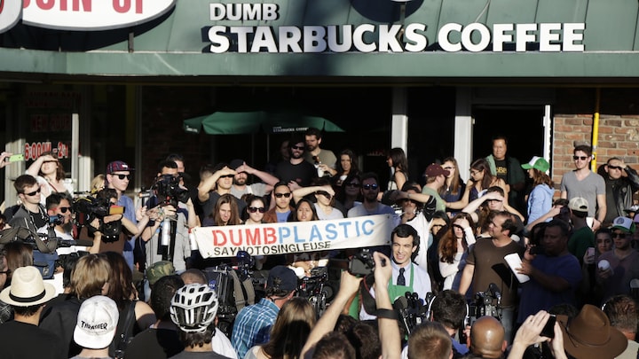 Som dengang han fik en lille café, der var ved at gå nedenom på grund af konkurrencen fra den lokale Starbucks, til at kopiere alt ved kaffegiganten, stjæle deres navn og provokere men undgå søgsmål ved at kalde den for Dumb Starbucks.