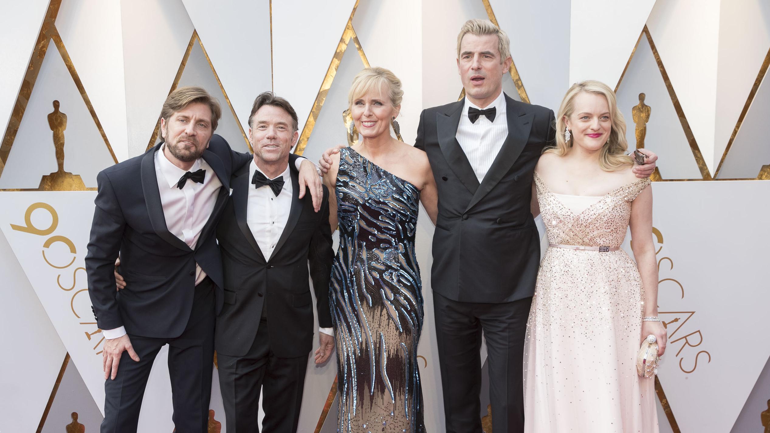 Danske Claes Bang (nummer to fra højre) på den røde løber med resten af holdet fra 'The Square', som var nomineret til en Oscar for bedste udenlandske film. (Foto: © Rick Rowell, (c) Getty images)